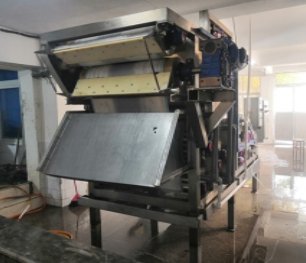 污泥经布料斗均匀送入滤网,随着滤带向前运行,游离态的水在自重作用下通过足够长的重力自由脱水区流入接水槽,重力脱水段也可以说是高度浓缩段,主要作用是脱去污泥中的大部分自由水及间隙水,使污泥的流动性减小,便于污泥在滤网上的较厚堆积,增强污泥对压榨的承受力。